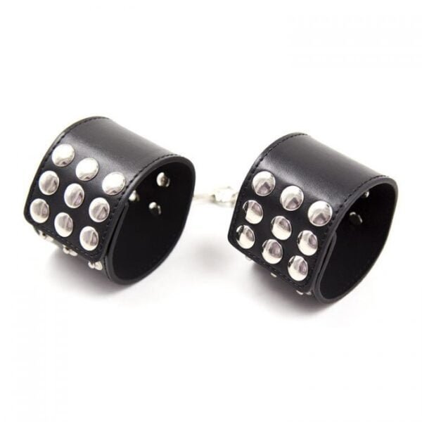 Inmovilizador para muñecas. Para una noche llena de fetiches y pasión. Las muñequeras están hechas de cuerina con cadena de metal.